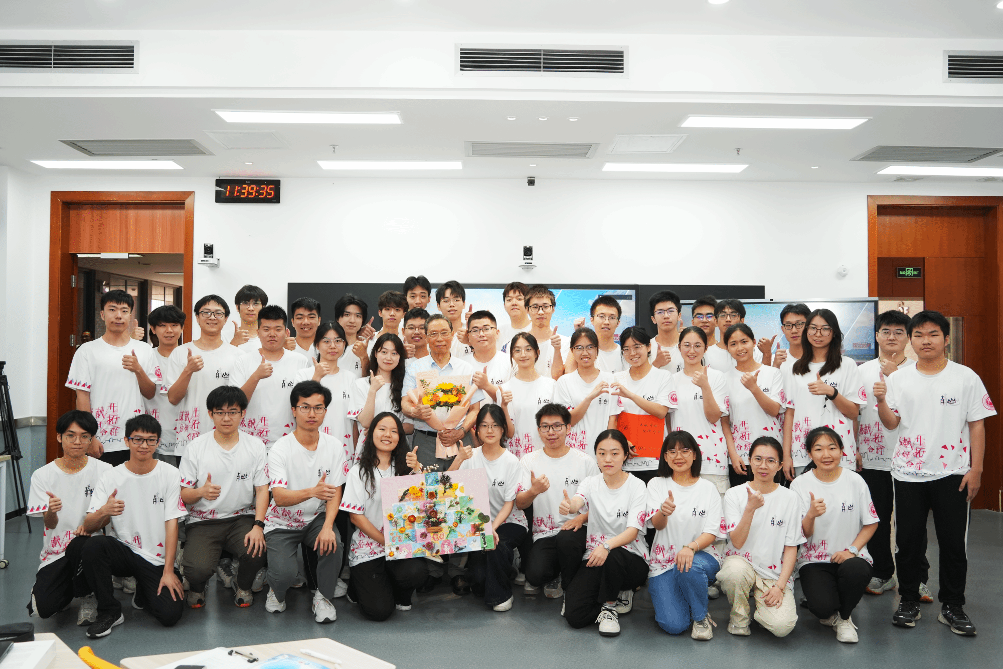 “四十片小画作拼成甲骨文‘山’字,每一笔都是少年眼里的光——您护过的孩子正在茁壮成长!”班长黎欣妍向钟南山院士介绍,“我们希望把真挚的谢意,种成会开花的山。这座‘山’不仅呼应南山班,更想表达您是我们心中永远的精神高山和学习榜样!”