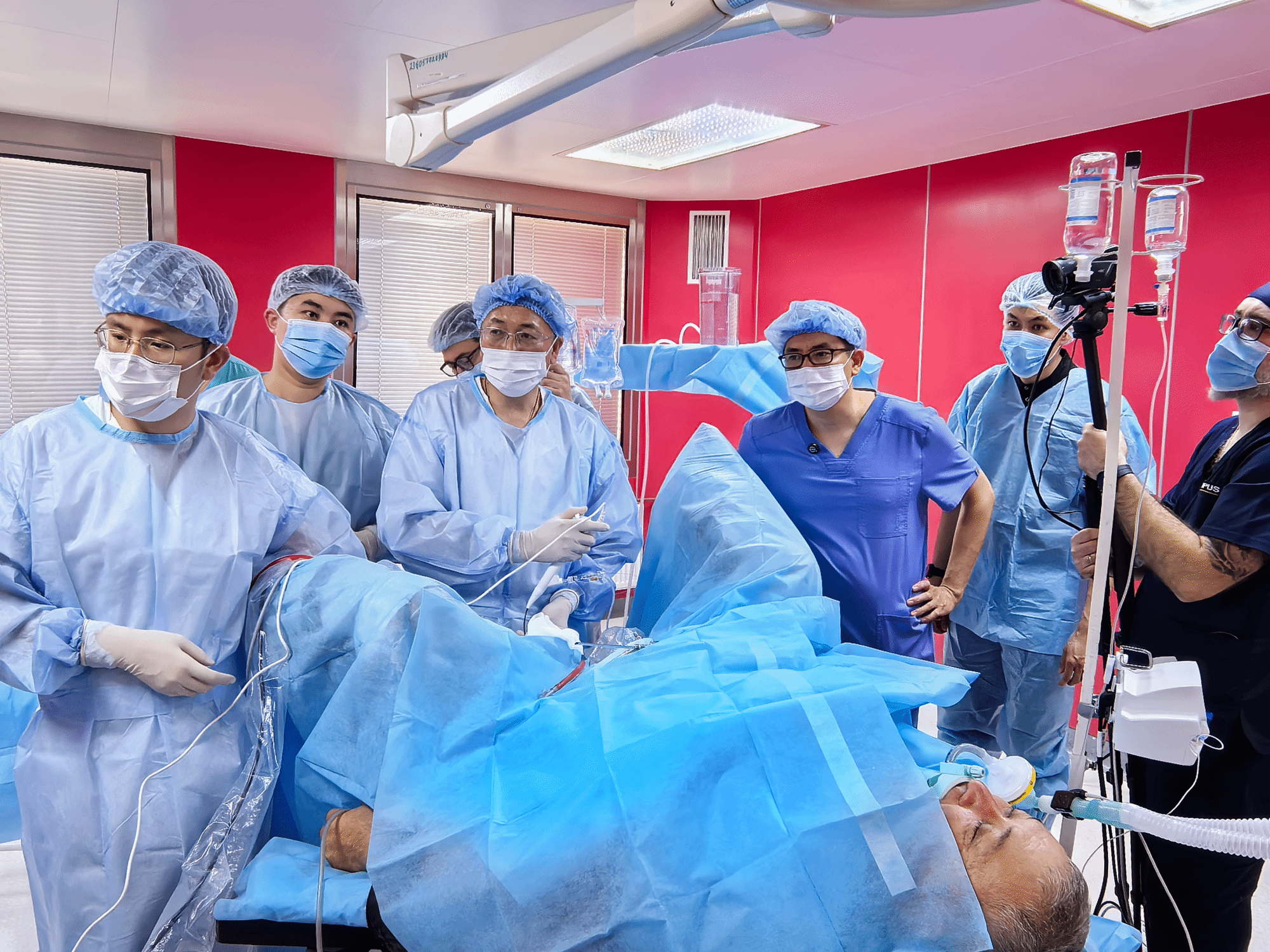 在哈萨克斯坦,曾国华团队进行手术演示