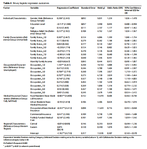 中国公众医疗决策模式统计与模型分析结果