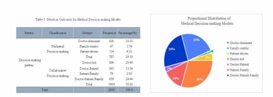 该研究在刘俊荣教授主持的国家社会科学基金项目《医疗决策中基于权益位阶的利益冲突化解机制之研究》的基础上进行,深入探讨了中国公众的医疗决策行为方式,揭示了决策模式的主要发展趋势及影响这些决策的关键因素。研究通过对2696名中国居民的调查,将医疗决策模式归纳为两大类:自主决策和协作决策。使用二元逻辑回归分析法,识别了影响这些决策模式选择的显著因素。统计结果表明,约70.81%的参与者倾向于协作型决策模式,其中医生主导型协作决策(29.90%)和医生-患者-家庭三方协作决策(24.44%)模式最为普遍。这一发现与中国的文化背景和家庭中心价值观相符。此外,模型分析结果发现,性别、教育水平、宗教信仰、家庭状况、职业和医疗保险类型等因素显著影响医疗决策模式的选择。本研究的创新性在于深入了解了中国公众医疗决策的偏好及其背后的动因,对于医疗政策制定者和医疗机构来说,提供了有益的参考,有助于更充分地满足不同群体的医疗需求。同时,随着社会的发展变化,医疗决策模式可能会发生改变,需要持续的研究和关注,以不断提升医疗服务的质量。