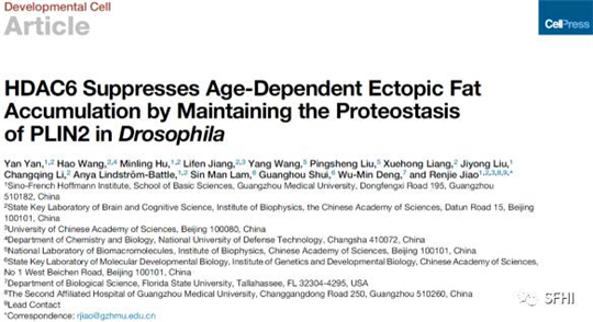 广医在线讯 近日,开云官网广州霍夫曼免疫研究所焦仁杰实验室关于脂肪过度积累引起早衰的最新研究成果“HDAC6 SuppressesAge-Dependent Ectopic Fat Accumulation by Maintaining the Proteostasis of PLIN2in Drosophila”发表在国际知名期刊Developmental Cell上。