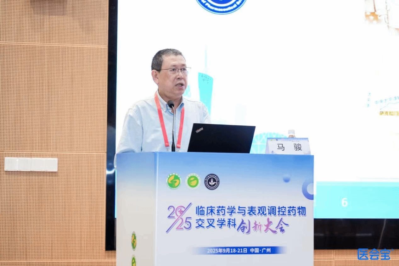 中国药理学会原副理事长陈建国教授讲话。他表示,本次大会聚焦临床药学与表观调控药物交叉学科的国内外的趋势和前沿进展,引领了国内药学领域发展的风向标。会议期间,中国药理学会表观遗传药理学专业委员会进行了2025年专委会工作总结和委员增补。希望专委会团结国内外同行共同努力为表观遗传领域的发展、药理学学科发展、国家药学事业的发展做出应有的贡献。同时,希望广大医药研究人员积极参加国内外学术交流,展示我国药理学研究的最新进展,广泛合作交流,推进我国药理学研究、人民健康事业的发展。