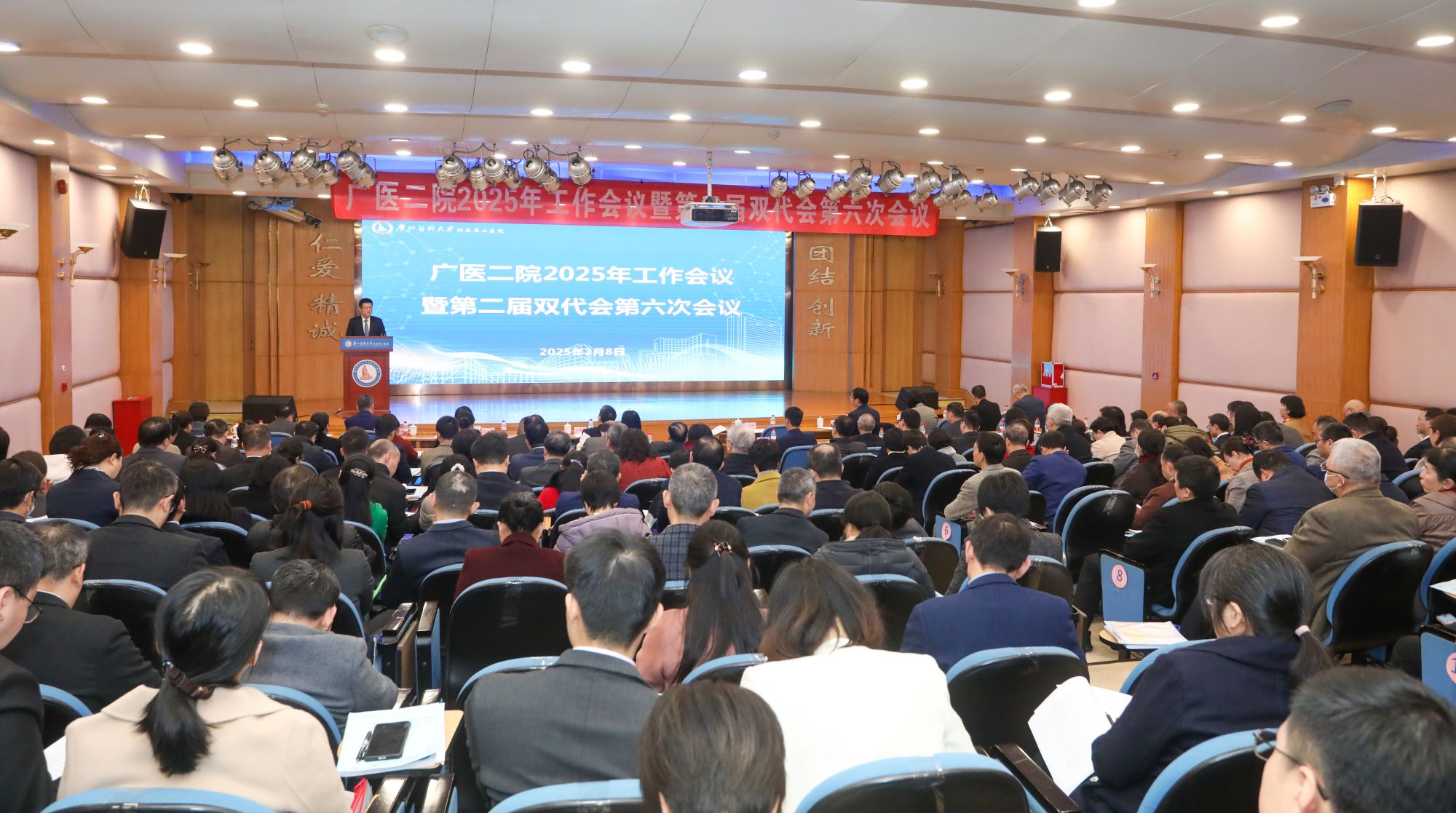 报告从“强化党建引领,为高质量发展夯实根基”“凝聚创新合力,全力以赴做好六项重点业务工作”“聚焦健康需求,提升医疗服务质效”“深化医教研协同,加强医学人才培养”“健全体系,优化机制,提升内部治理水平”“汇聚统战群团力量,文化赋能,共绘高质量发展‘同心圆’”等方面系统部署了医院2025年度工作。