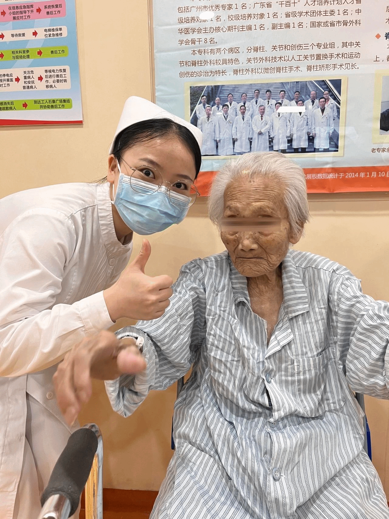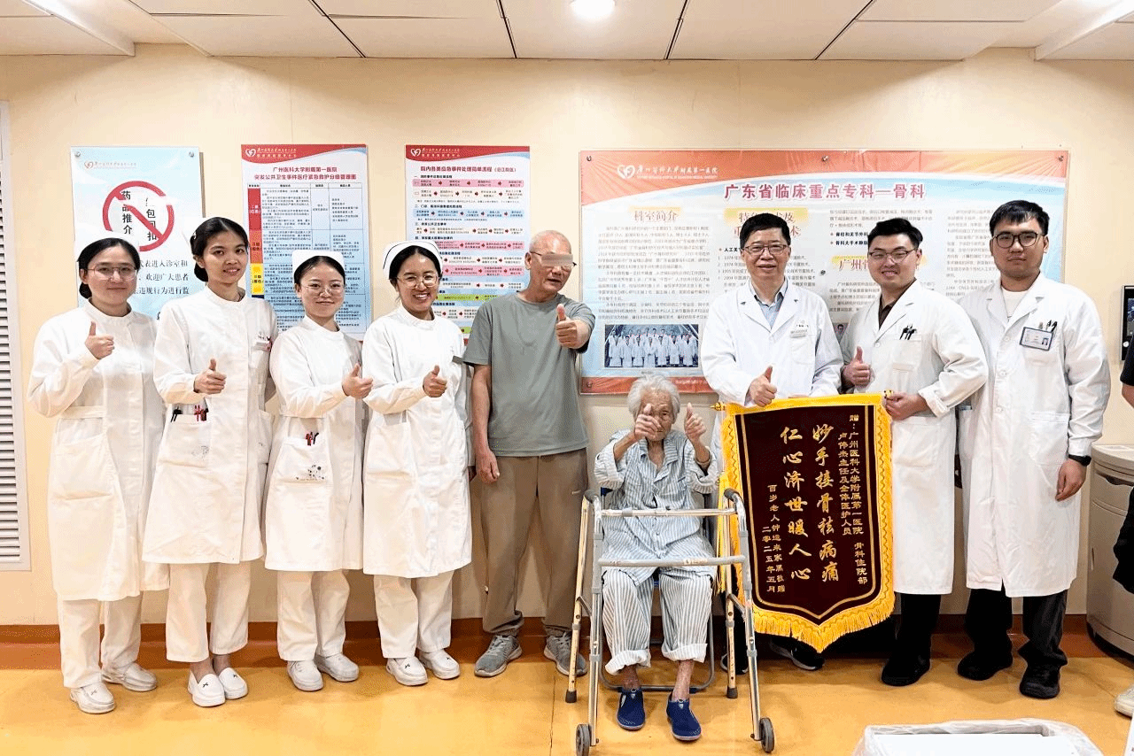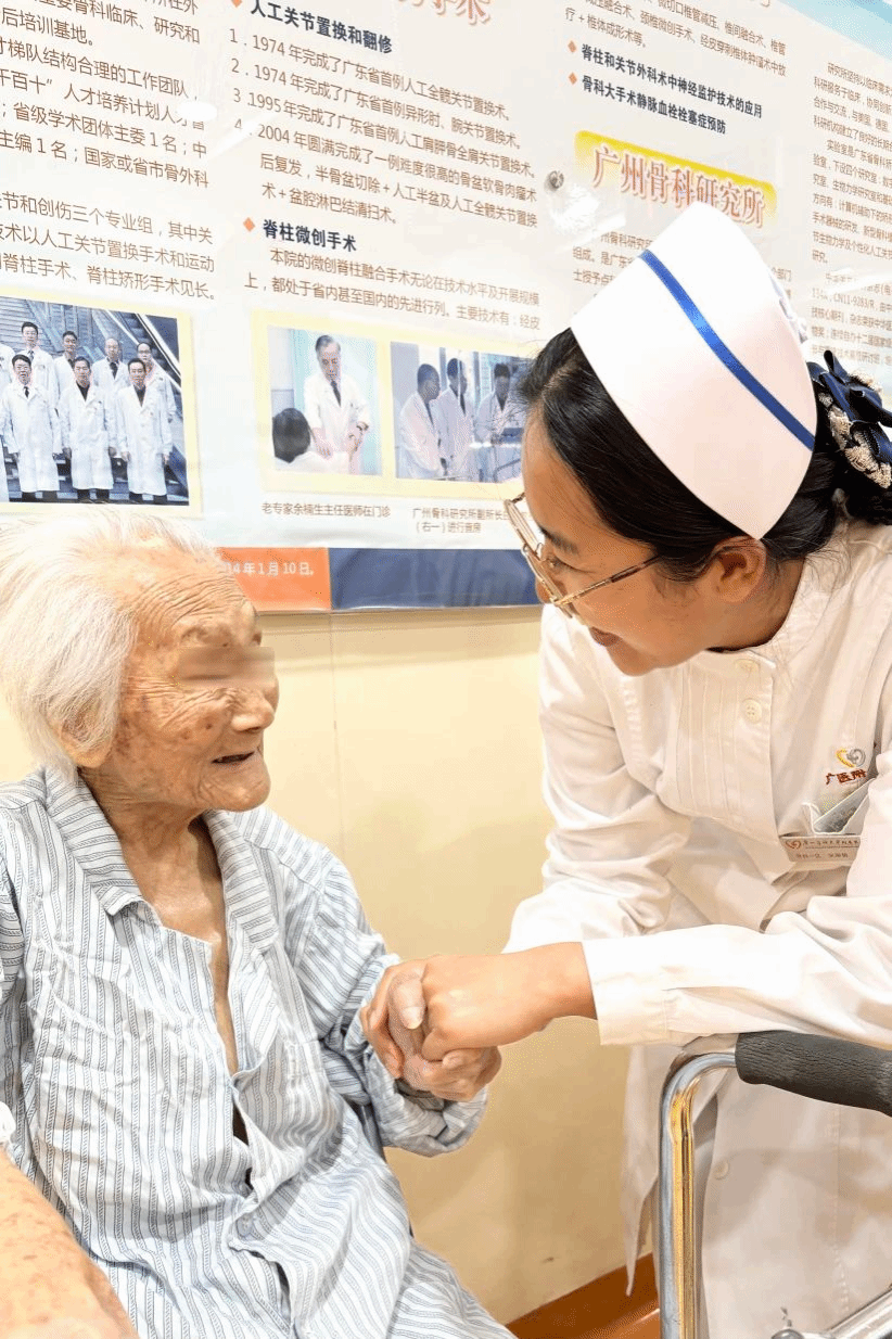 经过多学科医生、麻醉、护理多方紧密配合,百岁老人的生命体征平稳,患肢的血液循环和关节活动情况良好,未出现并发症。