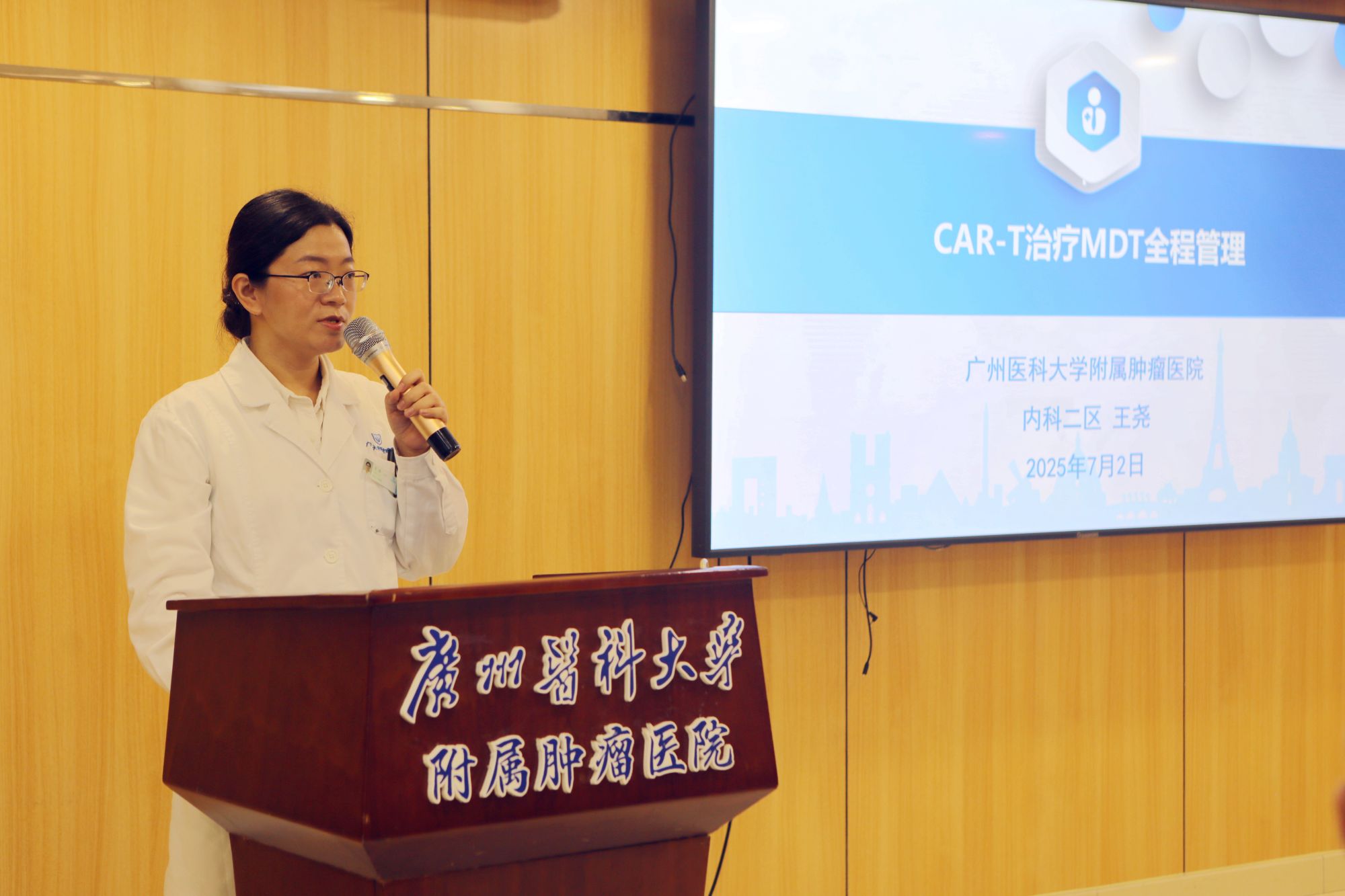 内科二区副主任医师王尧在学术汇报中介绍了CAR-T治疗MDT全程管理的内容。她谈到,CAR-T治疗不仅需要精准筛选患者,还需精细管理治疗过程,多学科协作有助于降低风险、提高疗效。