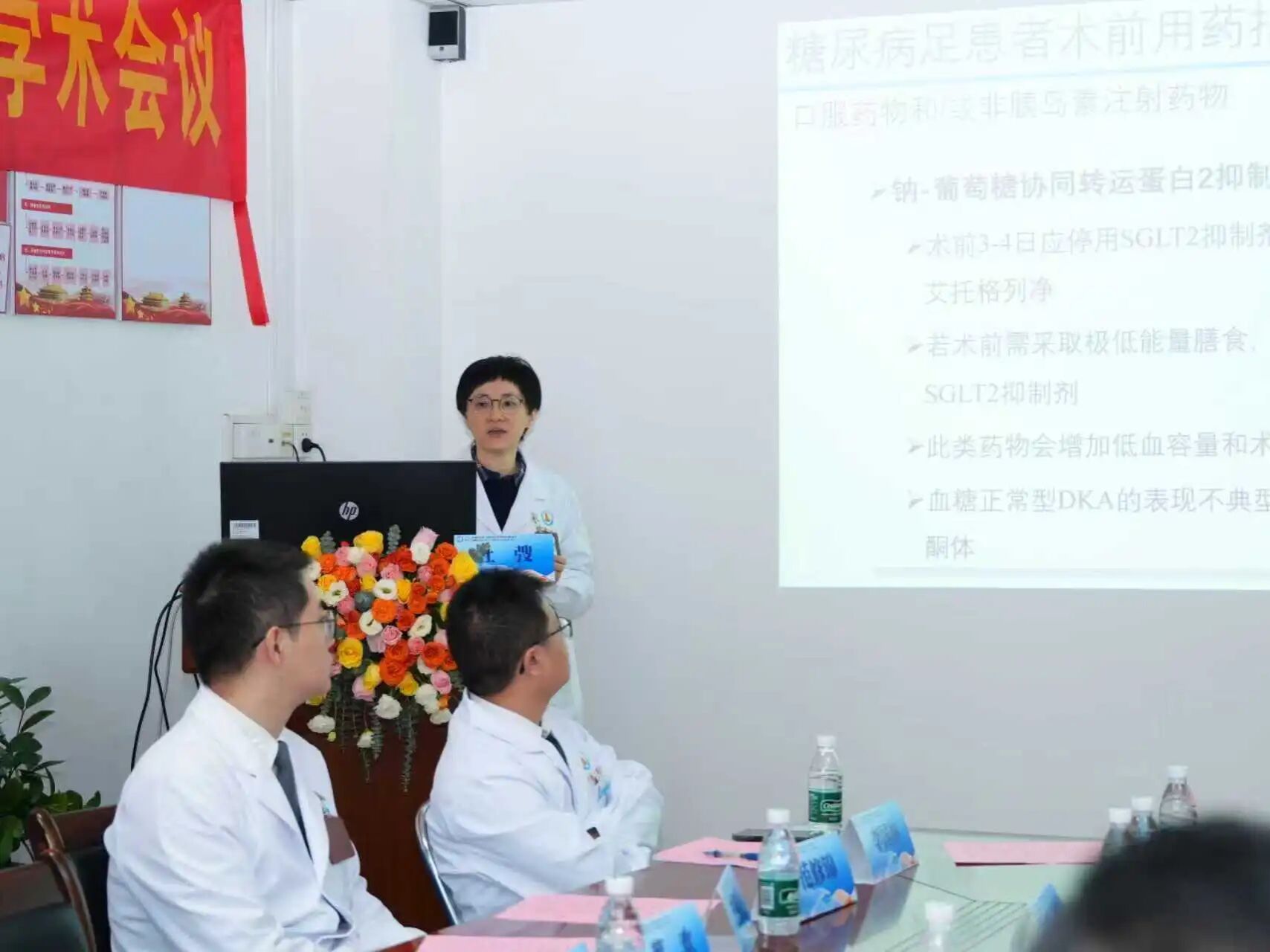随后,内分泌科杜弢教授主讲《糖尿病足血糖全周期管理》,血管外科李强副主任医师主讲《糖尿病足综合治疗——血运重建策略》,血管外科艾文佳教授主讲《糖尿病足认识与多学科一站式防治探讨》,广州市红十字会医院血管外科高一菁副主任医师主讲《血管外科在糖尿病足诊疗的角色》,中山大学孙逸仙纪念医院血管外科李勇辉博士主讲《糖尿病足诊疗经验分享》,骨科谢楚海教授主讲《糖尿病足创面手术修复之:植皮、皮瓣与VSD》,刘金玲副主任护师主讲《慢性创面清创及特殊敷料处理》。通过分享病例及学术交流机制,为患者提供更专业更具针对性的个体诊疗方案。
