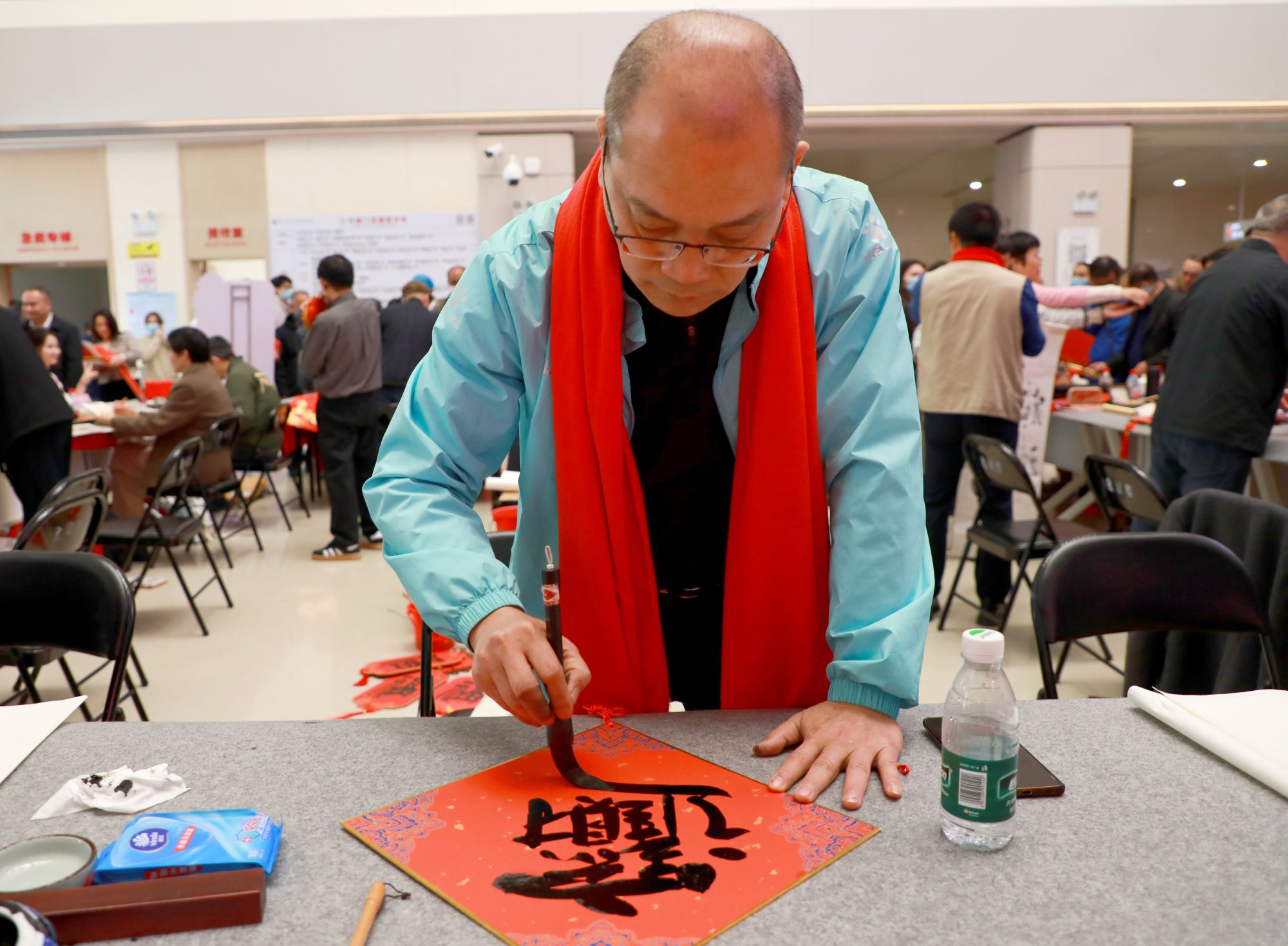 广东省书法家协会理事、广州市书法家协会副主席肖宇勇表示,广医四院多年持续举办挥春送福活动,将中华优秀传统文化与医疗惠民服务深度融合。马年新春的美好寓意与活动主题相得益彰,愿以笔墨寄情、以技艺传福,为市民增添新春喜庆。值此农历马年,“马到成功”“龙马精神”的美好期许,凝聚着彼此的共同祝愿,愿现场的每一副春联、每一个“福”字,为医院添一份祥和暖意,为医护工作者、患者及市民朋友们,送上最真挚的“马上送福”。