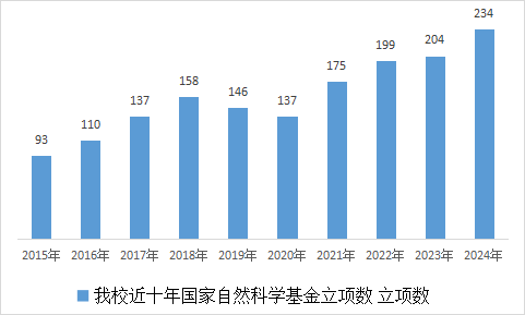 自2015年高水平大学建设工作启动以来,学校共获得各级各类纵向科研项目立项5400余项,合同经费共计约16亿元。其中,国家自然科学基金1593项、国家重点研发计划60项、国家科技重大专项26项、国家社会科学基金9项。