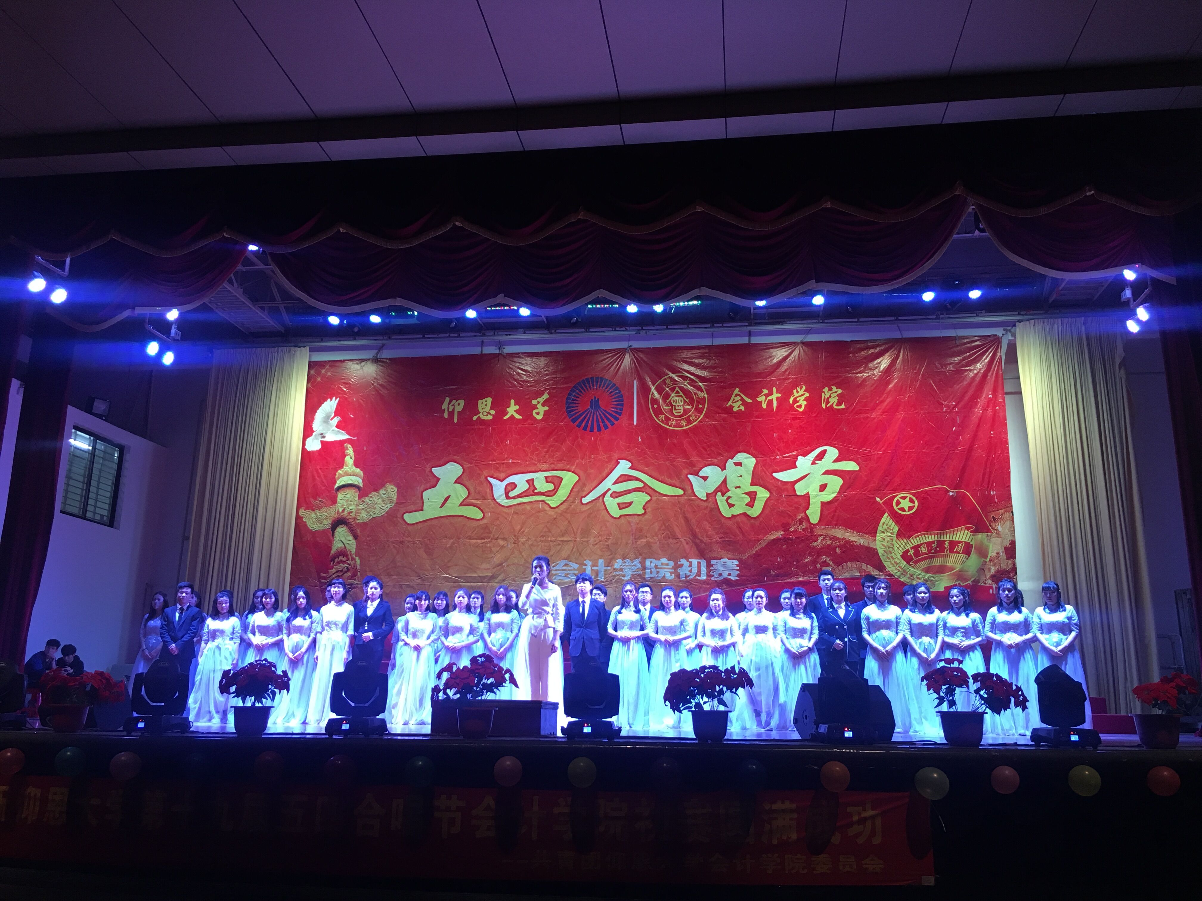 一段青春动感、活力四射的开场舞之后,高雪琪老师的一番激励人心的开场陈词拉开了本次比赛的序幕。本场比赛共有10个班级展现歌喉,各班级秉承发扬爱国主义,弘扬五四精神的信念,唱出了新时代青年大学生的精神风貌。一首首动人的歌曲,回荡在普照大礼堂,穿插的各种节目更是展现了大学生的创新思维与团队精神。最终,15会计1班以歌曲《春风十里》荣获一等奖及最佳精神风貌奖,动听的歌声,欢快的舞蹈 ,洋溢着青春的气息,与台下的同学们产生了 强烈的共鸣。