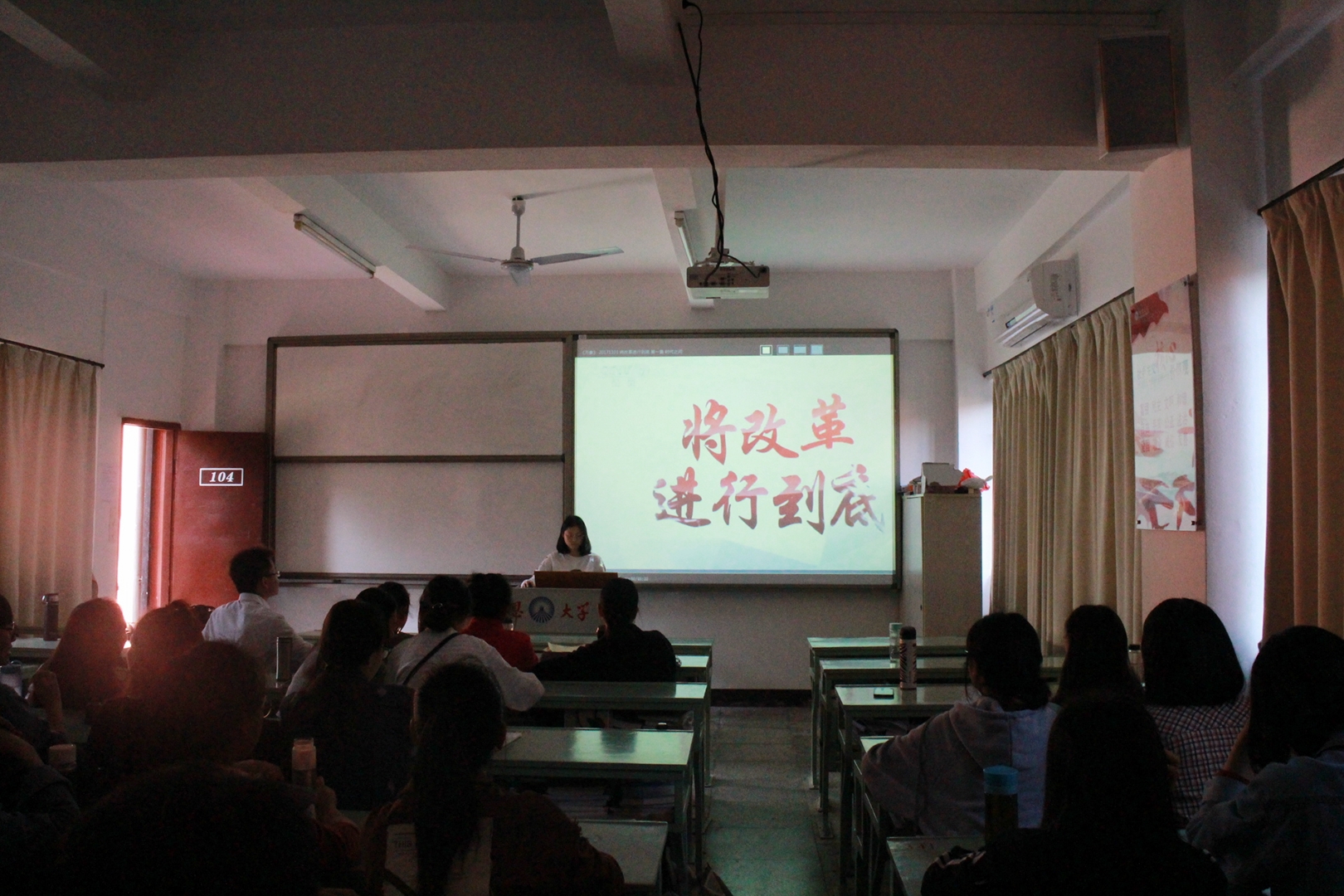 根据中共bw必威西汉姆联官方网站委员会宣传部下发的关于开展观看学习《将改革进行到底》等七部专题片的通知,2018年4月18日下午3:00于吉龙楼104,bw必威西汉姆联官方网站党总支组织教工党支部党员和会计一支党员一起观看《将改革进行到底》专题片。