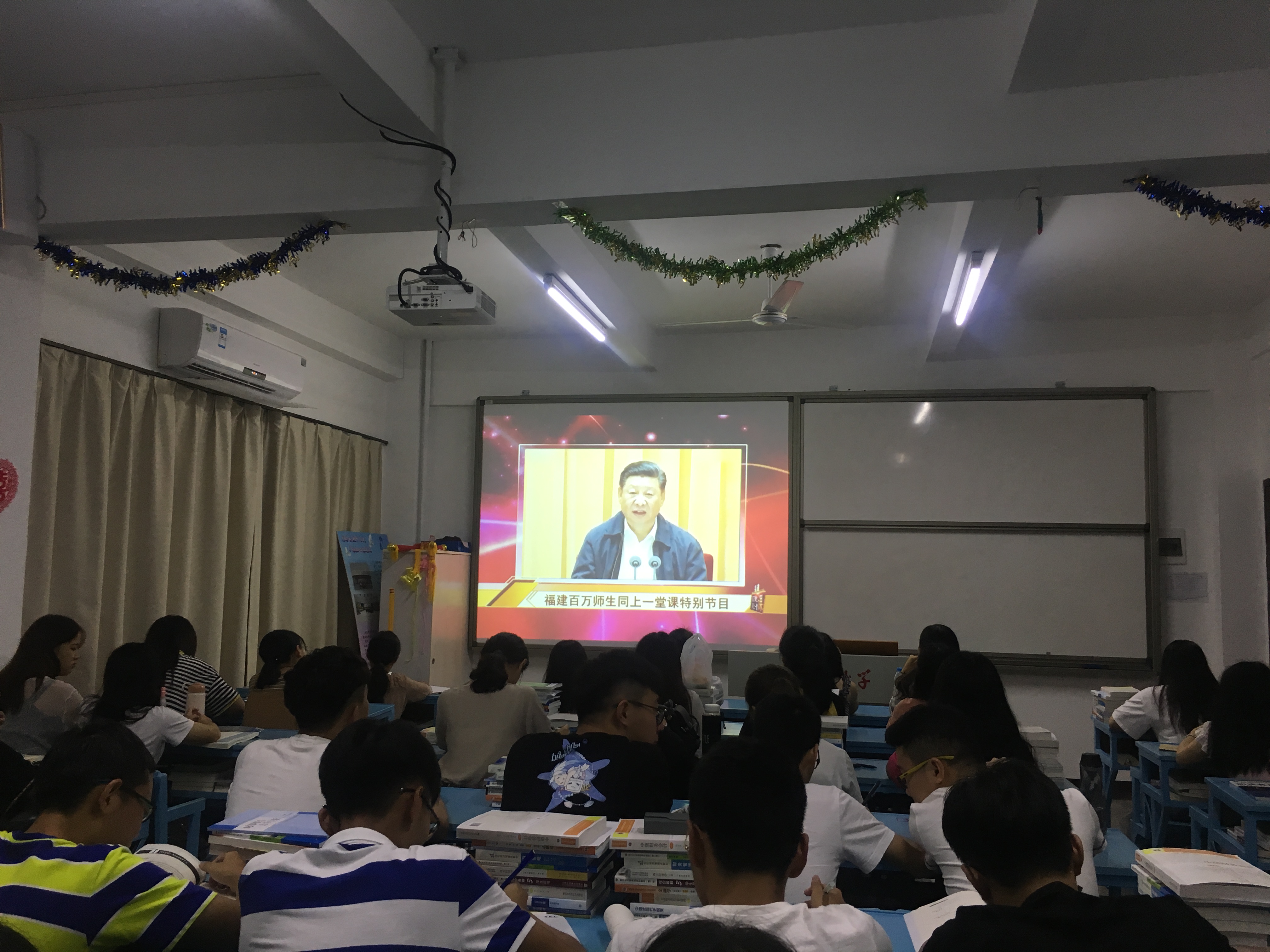 9月3日晚20:00,bw必威西汉姆联官方网站全体学生以班级为单位在各班班主任的组织下于吉龙楼各班级教室内共同观看“学习‘新思想’福建百万师生同上一堂课特别节目”。