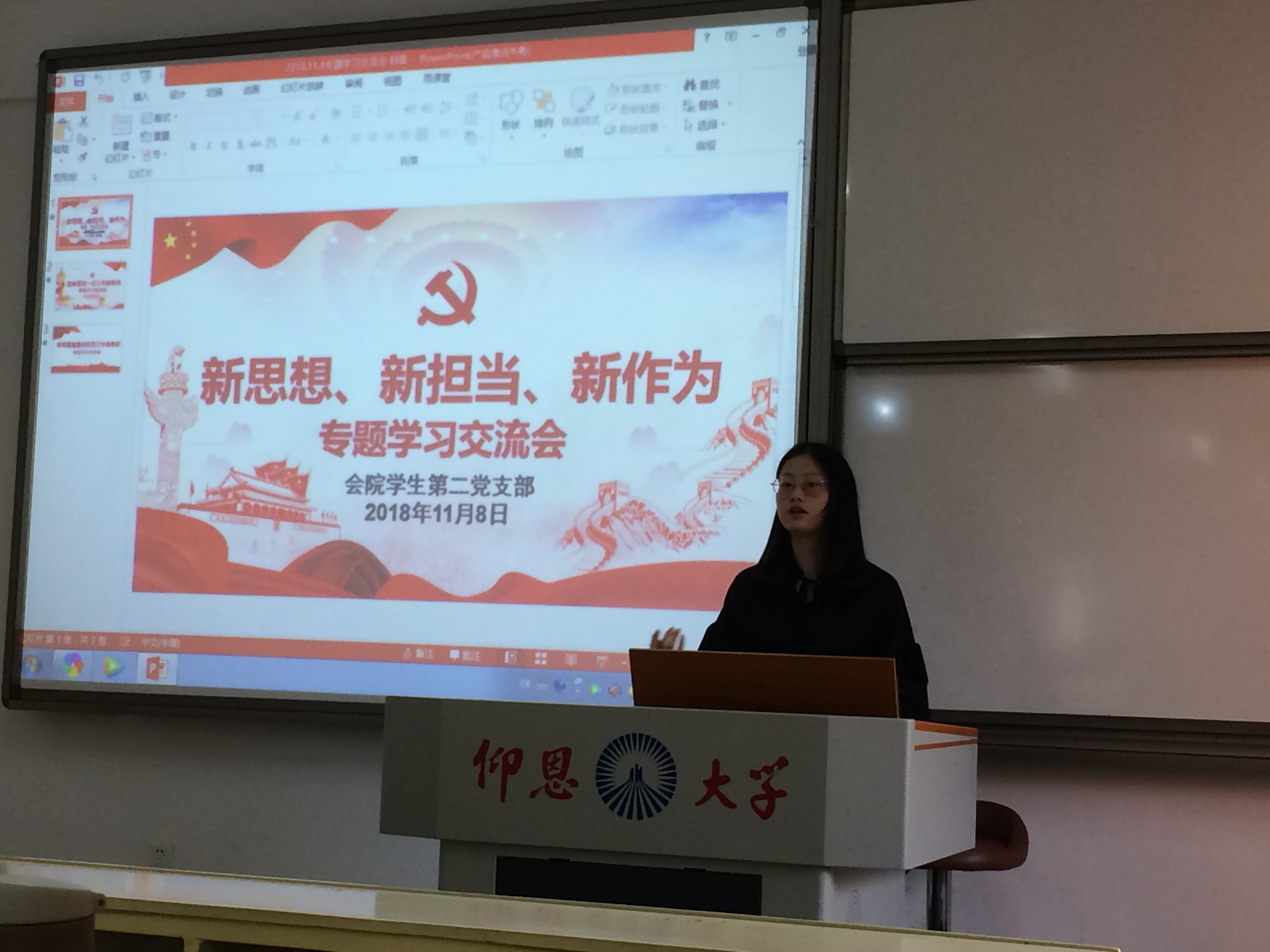bw必威西汉姆联官方网站学生第二党支部于2018年11月8日16:00在第一教学区吉龙楼304开展了“新时代、新思想、新担当、新作为”专题学习交流会,在学习交流会上,党员同志们积极进行学习交流与分享。