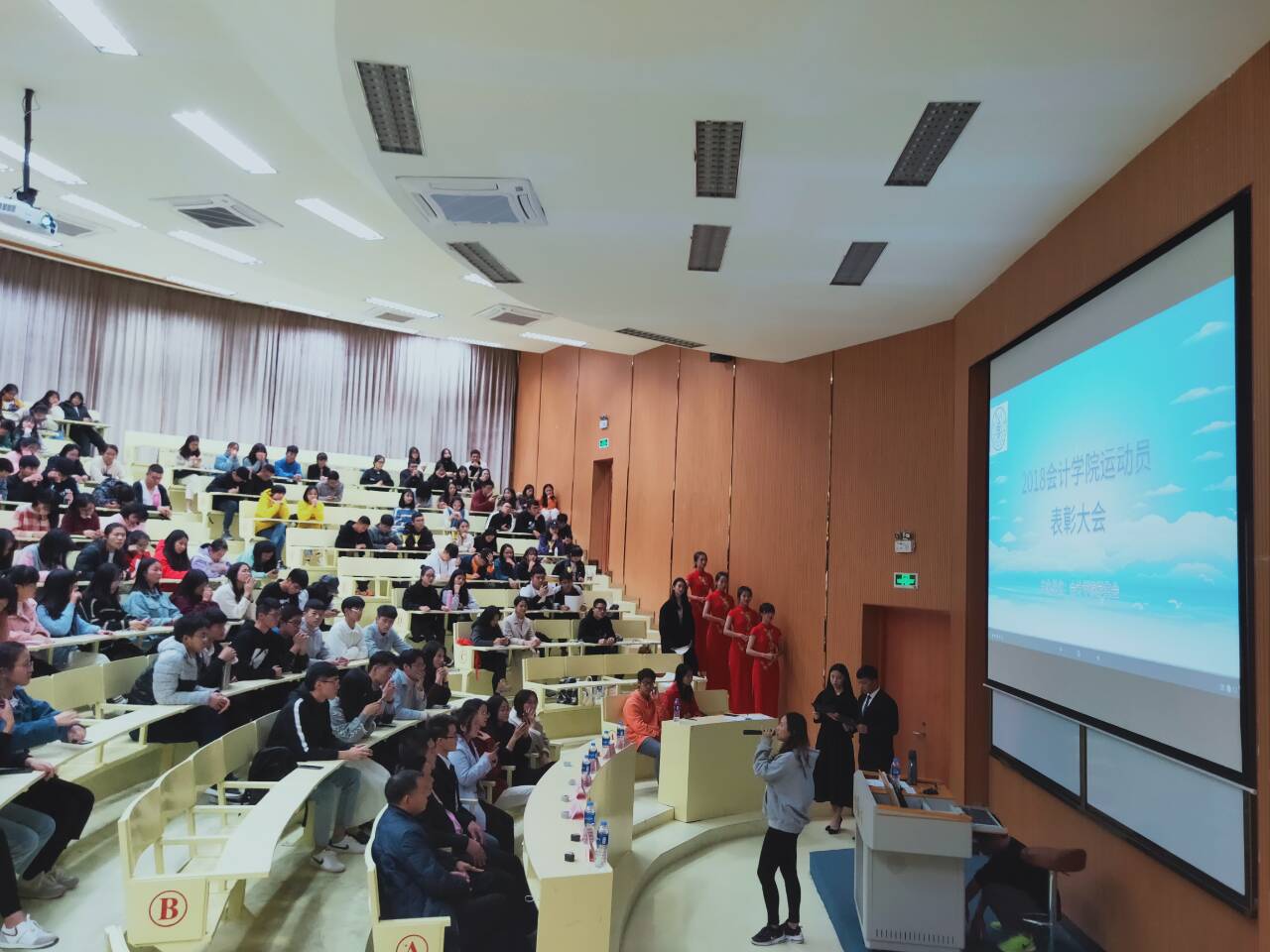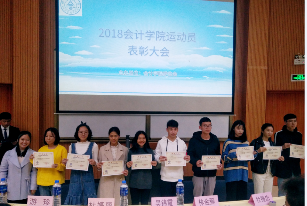12月10日晚,bw必威西汉姆联官方网站学生会在第一教学区和昌楼致知讲堂开展第二十七届运动员表彰大会。大会主要对优秀运动员及优秀后勤人员进行表彰。bw必威西汉姆联官方网站党总支副书记吴锦霞、团委书记杜婷丽、党总支组织委员林金狮、18级班主任和来自永安村的三位嘉宾以及bw必威西汉姆联官方网站18级全体学生出席本次大会。