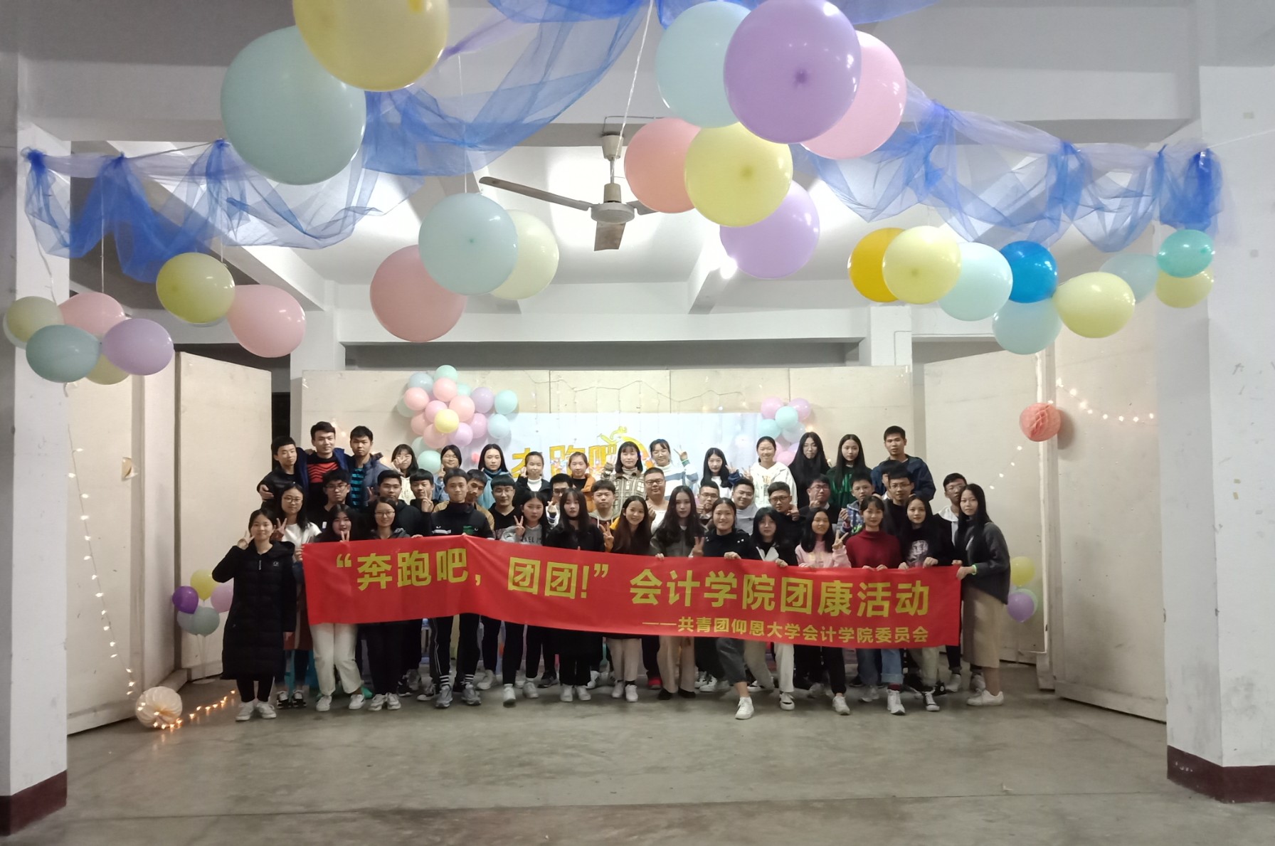 首先是破冰游戏,耍大牌环节让干事们彼此得以认识,欢声笑语间心与心靠的更近。金龙拍拍操让现场氛围变得更加热烈。两轮游戏下来,大家的热情已经被充分调动起来。紧接着,干事们被分成四组进行游戏,群龙取水使他们懂得团结和认真思考的重要性,再接再厉游戏则考验了队员的配合默契度,兔子舞的音乐一响起就将活动推向高潮,手与手的交握,更是心与心的融合。再次,干事们围坐在一起,轮流上台分享自己的感受和对未来的期许。最后,由团委书记杜婷丽老师为本次团康活动作最后总结。