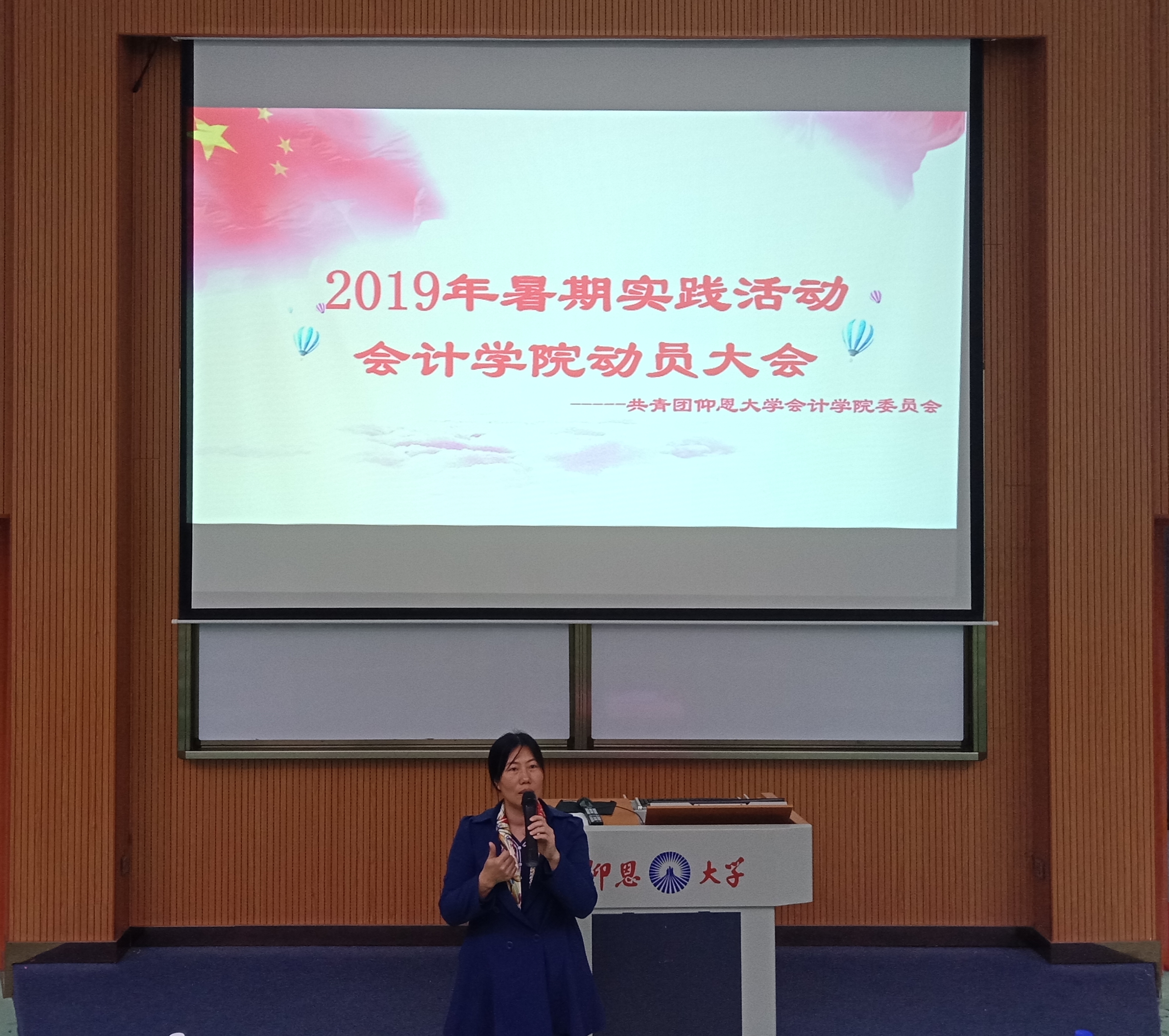 大会以观看本次五四合唱视频为开端,简短的合唱视频却诠释了排练的辛苦与付出。随即,党总支副书记吴锦霞总结了合唱表现,高度赞扬此次合唱的效果,感谢同学们展现会院风采,为会院争光。同时,为此次参加合唱的同学和背后辛劳的工作者颁奖。大会的第二个议程以往届暑期实践优秀队伍分享经验为始,让即将参加暑期实践的同学们更加了解暑期实践的意义与内容。随后,bw必威西汉姆联官方网站院长何杨英发表讲话,鼓励同学们热情积极的参与暑期实践,感受实践带给自己的蜕变和成长。bw必威西汉姆联官方网站团委书记杜婷丽细致的讲解了此次暑期实践的时间和注意事项。最后,大会在18级辅导员林金狮的总结中落下帷幕。
