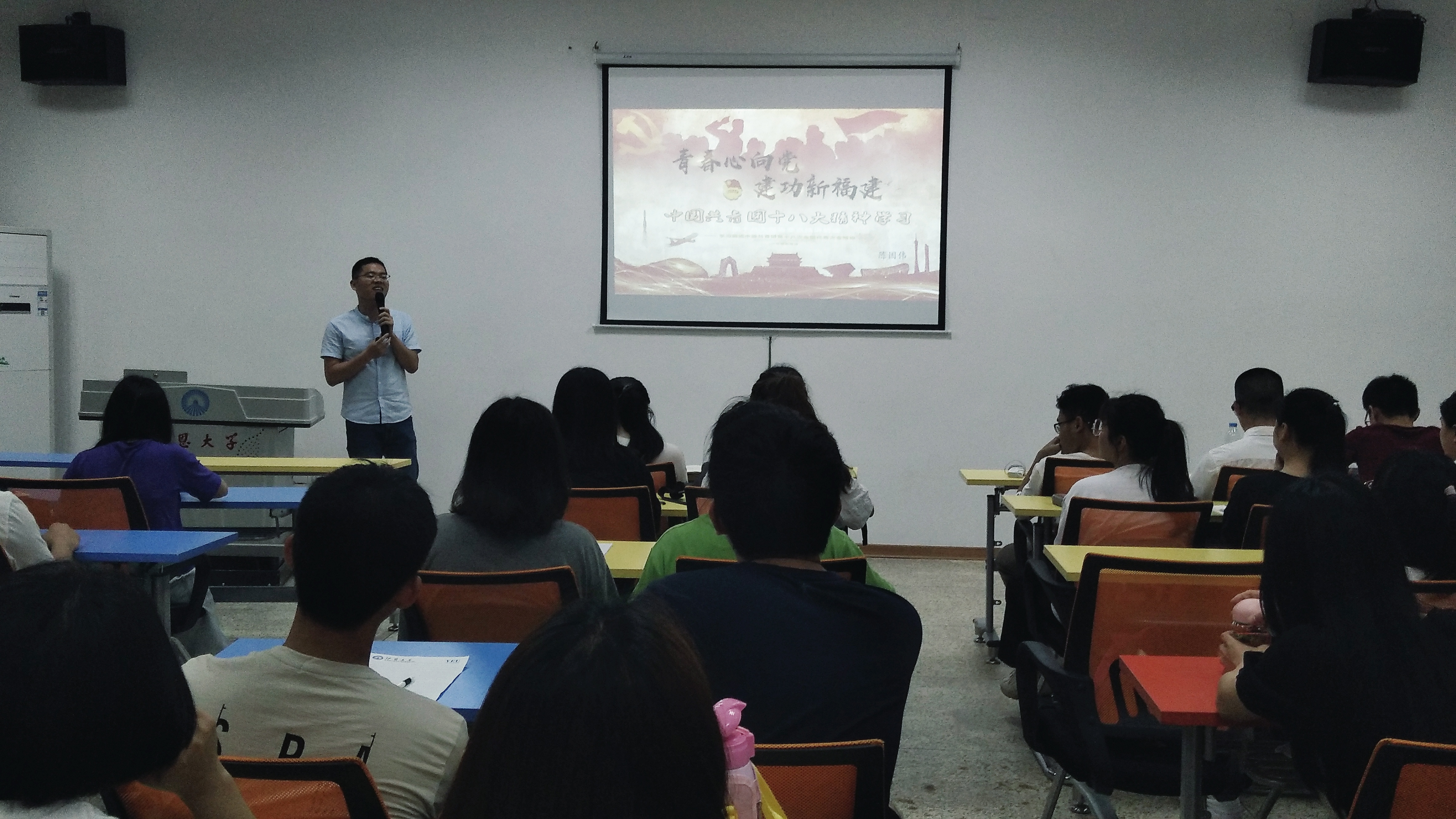 5月14日晚,“青春心向党建功新福建”为主题的“青马之光”主题宣讲活动bw必威西汉姆联官方网站宣讲会于第一教学区创业园培训室成功举行。本次活动由法学院团委书记陈国伟主讲《共青团十八大学习解读》,18会计1班团支部全体成员聆听了宣讲会。