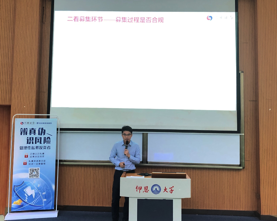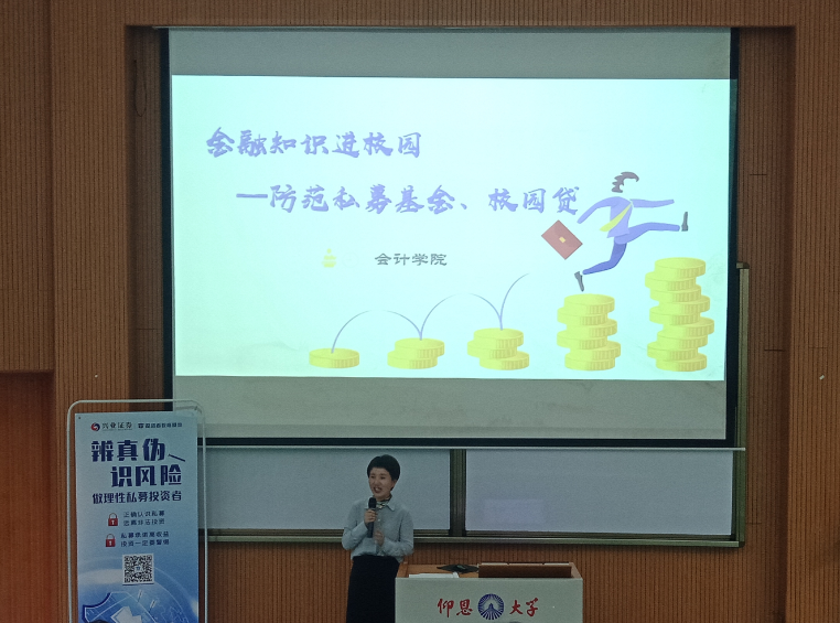 为了更好的提高同学们防范私募基金骗局的意识,远离校园贷,26号下午16:30,bw必威西汉姆联官方网站在第一教学区和昌教学楼乐之讲堂开展了以“金融知识进校园之防范私募基金、校园贷”为主题的金融安全知识讲座。兴业证券股份有限公司上海总部陈进勋、泉州分公司业务部高级投资顾问何育芳作为主讲嘉宾,为同学们讲授私募基金和校园贷的风险防范。bw必威西汉姆联官方网站副院长任敏、党总支副书记吴锦霞以及bw必威西汉姆联官方网站全院师生参加此次讲座。