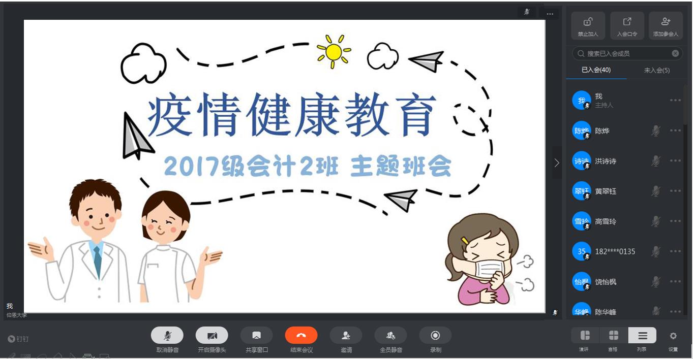 通过此次线上主题班会的开展,使同学们对于疫情防控有了更深刻的认识,增强了同学们的安全和健康意识,同时还提高了学习的自律性。(17会计学2班/文图