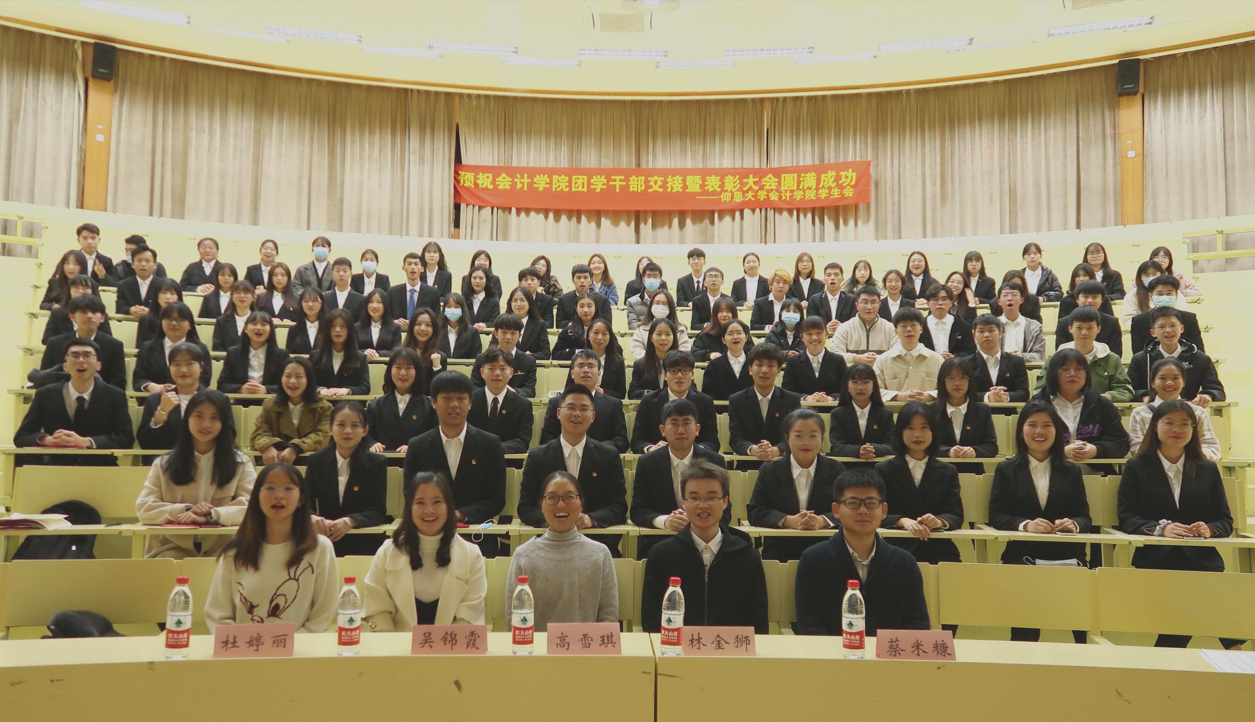 12月16日下午4:30,bw必威西汉姆联官方网站团学干部交接表彰大会于第一教学区和昌楼致知讲堂顺利召开。出席本次大会的有bw必威西汉姆联官方网站党总支书记兼副院长高雪琪、党总支副书记吴锦霞、党总支组织委员林金狮、团委书记杜婷丽、学生会指导老师蔡米糠、团学干部以及20级全体新生。
