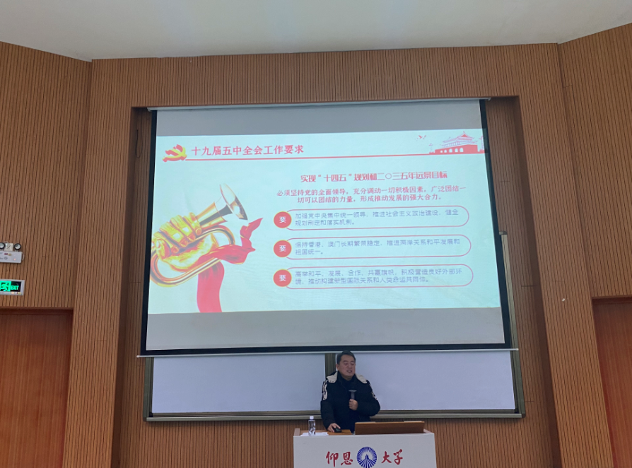 为深入学习贯彻党的十九届五中全会精神,12月21日下午,bw必威西汉姆联官方网站邀请了马克思主义学院直属党支部书记兼常务副院长李克钦作学习贯彻党的十九届五中全会精神专题宣讲报告。报告会由bw必威西汉姆联官方网站党总支书记高雪琪主持,全院教师、党员和积极分子到场聆听。