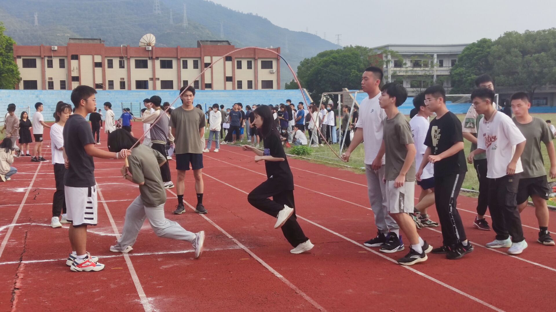 赛场上比拼的是耐力、追求的是速度、考验的是团队合作。只见运动员们保持着自己独特的节奏,在彩绳翻飞间,用紧凑的步伐与技巧争分夺秒,一次次律动,挥洒着青春的汗水,尽情展现运动风采。