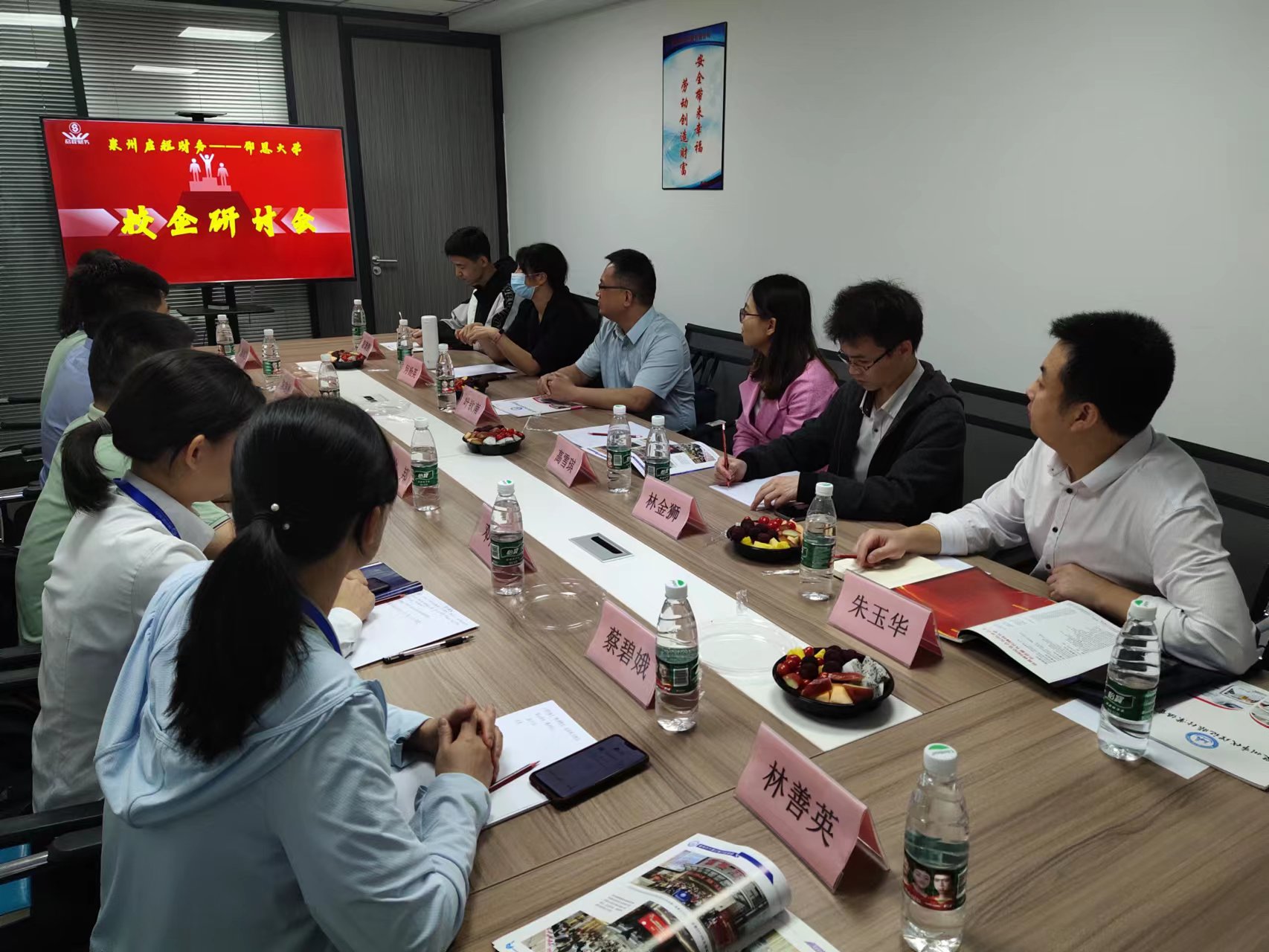 在企业负责人的带领下,叶钦南一行了解了走访企业的企业文化、发展规划、生产经营、用人需求、产学研合作等方面情况,看望了在企业工作的校友,并与泉州市启程财务咨询有限公司董事长徐本玉、泉州市启程财务咨询有限公司总经理徐邦、宏兴财税服务集团有限责任公司副总经理邓丽华进行座谈。