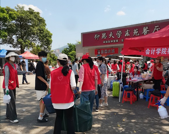 两日的迎新工作从清早便如火如荼地进行着,辅导员、班主任、班导以及穿着红色马甲的志愿者们来回穿梭在迎新帐篷处、行李搬运处、注册点、宿舍楼下等各个地方,一遍遍做着搬运行李、材料收集、提供咨询、递送水等工作,虽是辛苦,但他们的热情洋溢仍能感染到每一位新生。为了保障一系列迎新工作的有条不紊,必威官网院长何杨英、党总支书记高雪琪也持续驻守在各处工作点上,亲力亲为,零距离接触会院迎新第一线,通过现场的统筹、协调、细致安排,使必威官网迎新工作真正做到了让学生满意,让家长放心。 解锁大学,筑梦起航