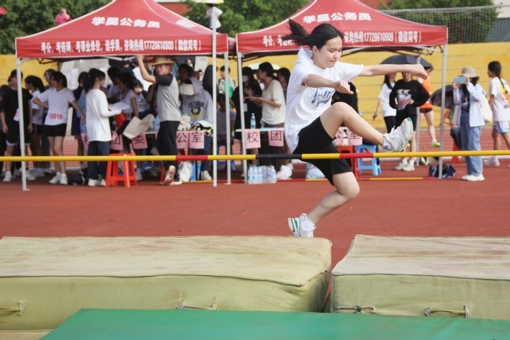 如果说标枪用距离告诉了我们什么才是青春,那么跳高则是用高度证明了什么才是梦想——女子跳高比赛中,颜幼绮同学在大家的掌声和呐喊中缓缓入场,她神情淡定,丝毫没有受到现场嘈杂环境的影响,目视前方,起跑、加速、腾空、过杆、落地。她的每一次起跳,我们都绷紧了神经,完美的一条弧线永远定格在现场每个人的心中。她为bw必威西汉姆联官方网站赢得了女子跳高第四名的荣誉。