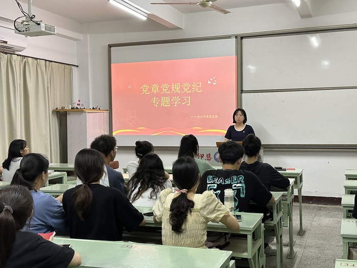 在学习过程中,教工党支部采用了多种形式,如集中学习、小组讨论、网络学习等,通过互动交流,增加专题学习的实效性;会计学系学生党支部党员结合时事抒发了自身感想,纷纷表示要守住底线、廉洁自律,永葆党员的先进性和纯洁性;财务管理系学生党支部党员围绕“用新党章立身做新时代青年”和“防腐倡廉扬清风时代青年担重责”两个主题展开充分讨论和分享;会计学(专升本)学生党支部的党员分享到:在今后的学习和生活中,要将带头学习理论、带头遵守纪律、带头服务同学、带头弘扬风尚,从点滴做起、从身边做起、从细节做起,切实发挥好大学生党员的榜样示范作用;财务管理(专升本)学生党支部党员分享到:学习党章的根本目的是要不断提升自身的党性修养和觉悟,必须清楚自身的不足之处,要把自己的行为和思想都摆进党章的学习当中,切切实实找到与党章要求的差距,才能更有针对性地补足精神之“钙”、铸牢理想信念之魂。