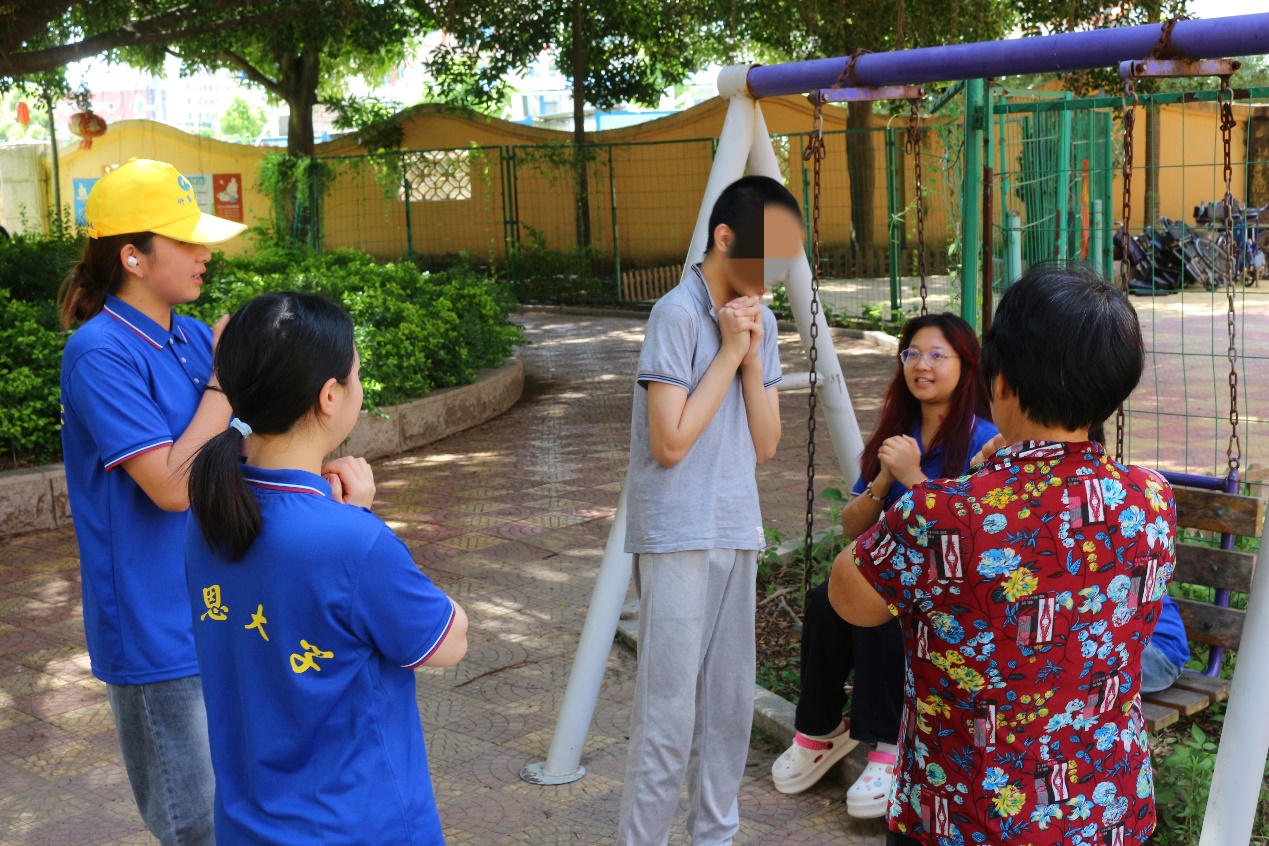 实践队队员们在培训中心老师的带领下,有条不紊地开展了各自的工作。在实践活动中,实践队队员走进自闭症儿童的教室陪伴他们上课,在这个过程中,实践队队员了解到自闭症儿童们都有着自己独特的思维方式和表达方式,孩子们的表达会在不经意间的动作和神态中显露。实践队队员们还利用亲子互动、户外活动、游戏等多种互动方式,帮助他们建立自信心、培养归属感,感受到人与人之间的联系。同时实践队队员也乐此不疲地为自闭症儿童们表演风筝歌,选取适合他们的舞蹈和歌曲,让他们体验到生活中蕴含的无限乐趣。