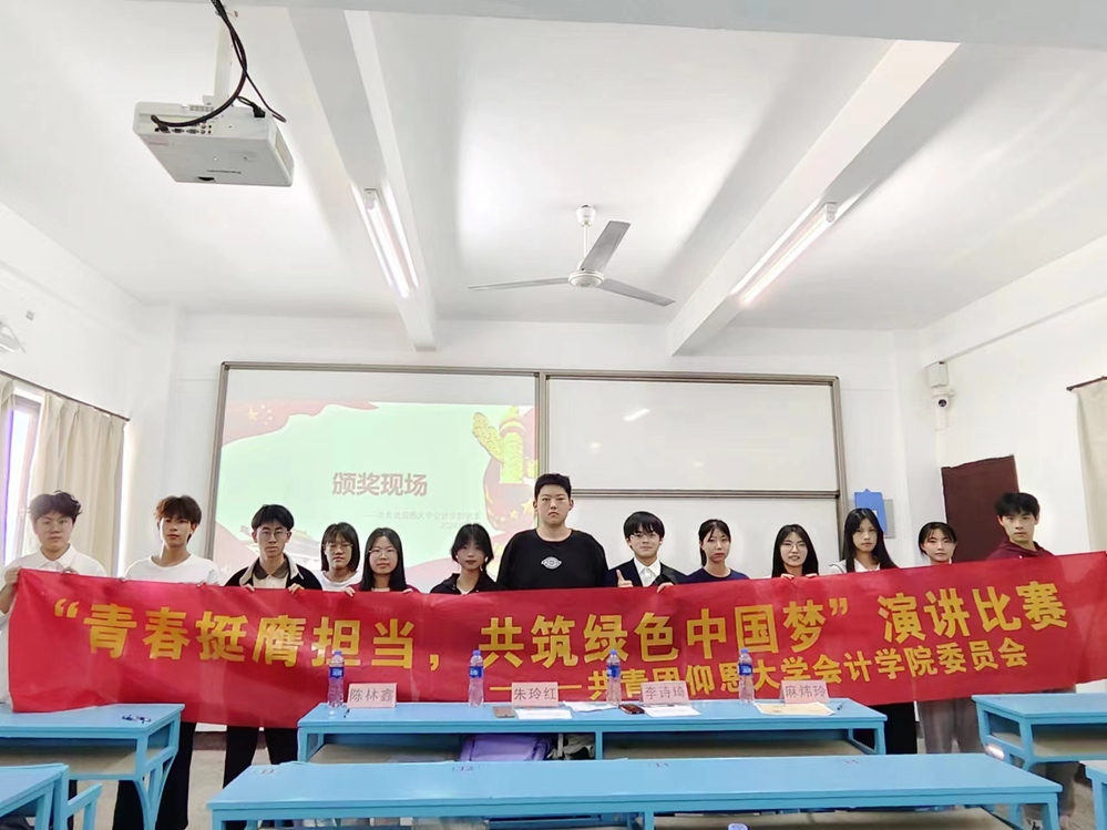 比赛中,参赛同学通过演讲阐述了绿色环保的重要性,以及如何通过行动践行环保理念。环保行动是一场没有终点的战斗,我们每个人都是这场战斗中的战士。经过比拼,最终23财管1班林欣蓉获得一等奖,22财管1班林鹏获得二等奖,22财管1班谭雄辉、22会计1班张睿哲获得三等奖,23财管2班林怡姿毕秀、23会计2班张宇婕获得优秀奖。