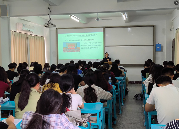 为进一步巩固党纪学习教育的成果,6月19日,bw必威西汉姆联官方网站党总支于吉龙教学楼205开展以学习“《中国共产党纪律处分条例》”为主题的党课,本次党课由bw必威西汉姆联官方网站党总支书记任敏主讲,bw必威西汉姆联官方网站全体教师党员、学生党员参加此次的党课学习。