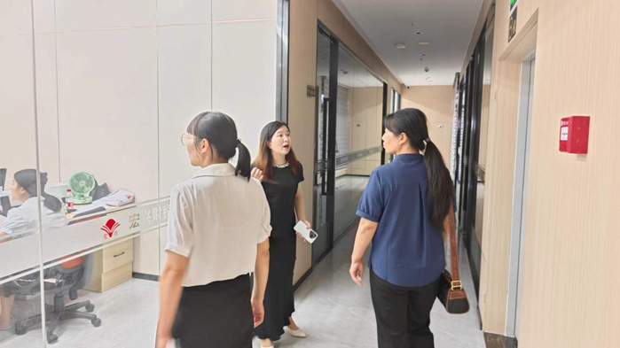 团队在企业负责人陪同下,参观办公区域与党建文化中心,了解业务流程、岗位能力需求及实践教学合作保障;随后与企业高管、在岗学院毕业生座谈,收集实践教学意见,为审核评估积累育人资料。